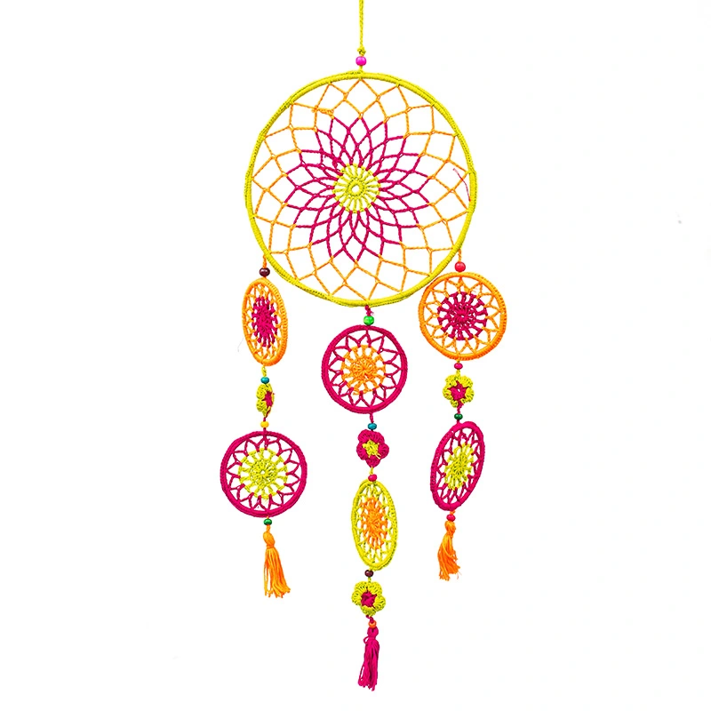 Fill your home with positivity and good vibes with these hand-crafted, colourful dream catchers. Crocheted with care using cotton yarn on metal rings and embellished with feathers, the Rangeen dream catchers are perfect for your windows, doors, balconies or walls.