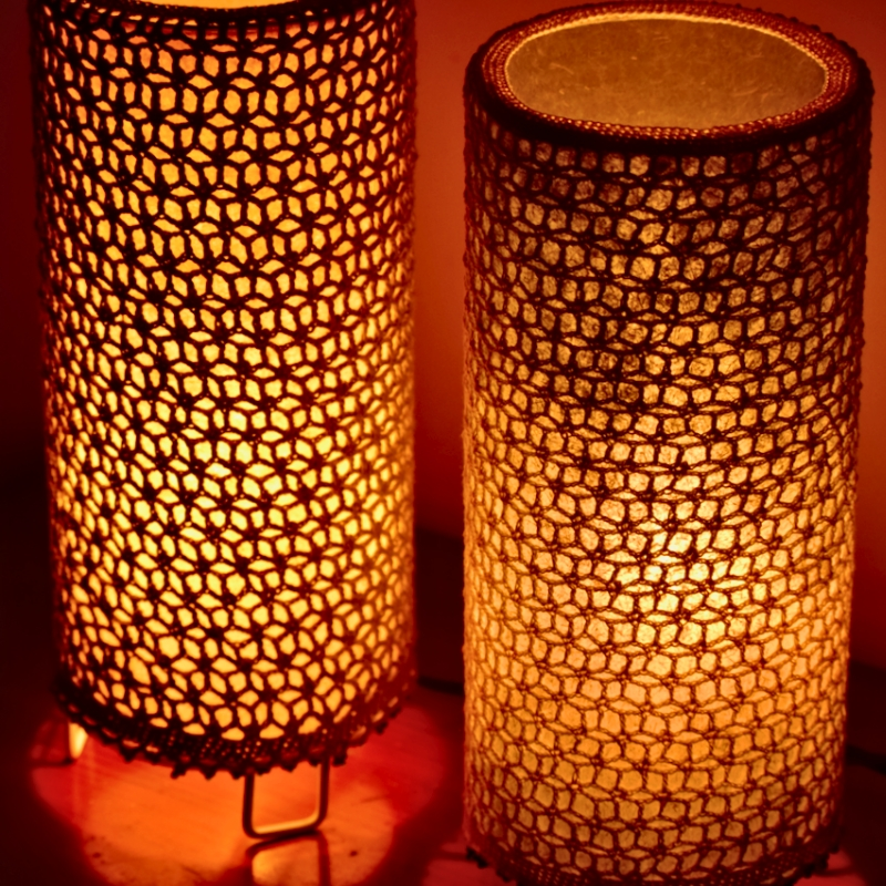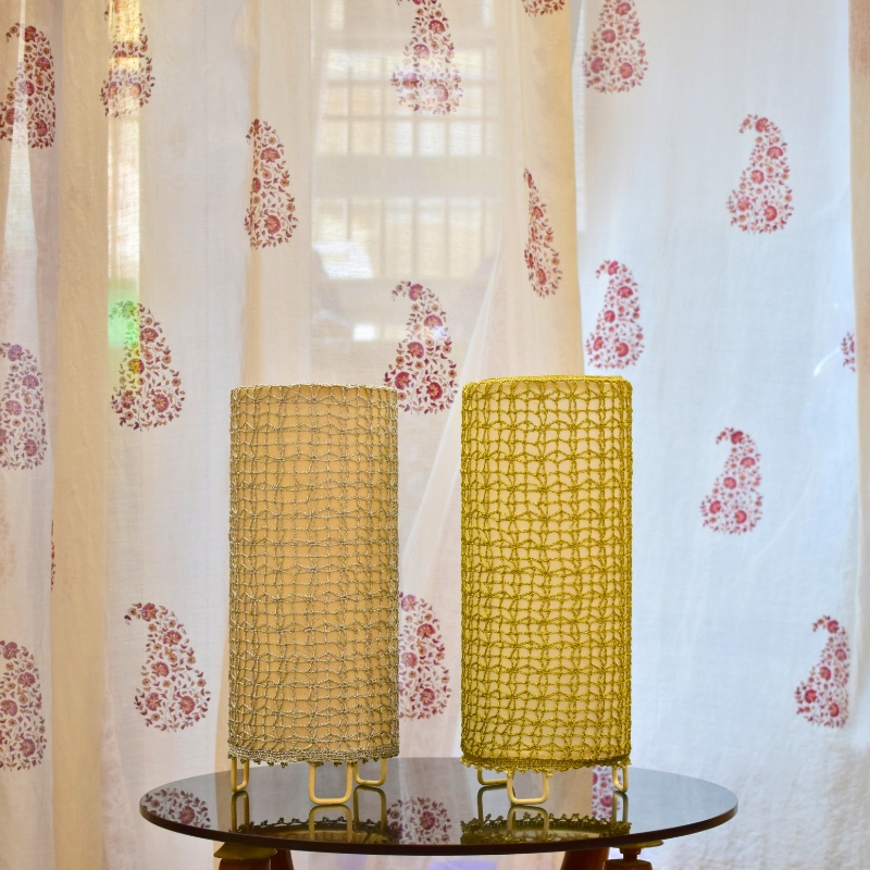 Fed up with your lamps getting dirty too quickly? We have an excellent solution for you. Introducing our one-of-a-kind, washable crochet Zari lamp. It comes with a hand-crocheted lattice, in either gold or silver, that can be gently removed from the metal frame, washed with a mild detergent, and reused. The crochet lattice design is inspired by the lattices found in the monuments in the Nizamuddin area. The Zari lamp is perfect for creating a cosy ambience in any room and can also be used to complement direct lighting. Even without being illuminated, it looks beautiful and adds a touch of elegance to your decor.
